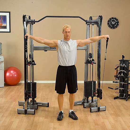 Mit dem Body-Solid Functional Training Center „GDCC200“ können dank verstellbaren Seilzügen sehr viele Übungen für den gesamten Körper durchgeführt werden. Die 2 Gewichtstürme à 72,5 kg funktionieren unabhängig voneinander. Die Türme sind ergonomisch angeordnet und dank 20-facher Rasterung können die Seilausgänge beliebig positioniert werden.