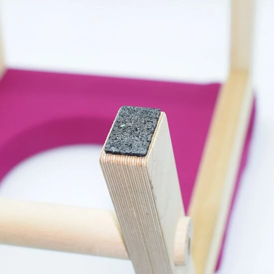 Das Holzgestell des Yoga Kopfstandhockers von Siya besteht aus ergonomisch abgerundeten Griffen zur Schonung der Handgelenke sowie einer runden Balancestange für die Füße. Das Gestell ist aus stabilem, naturbelassenem sowie FSC- zertifiziertem Birken- und Buchenholz