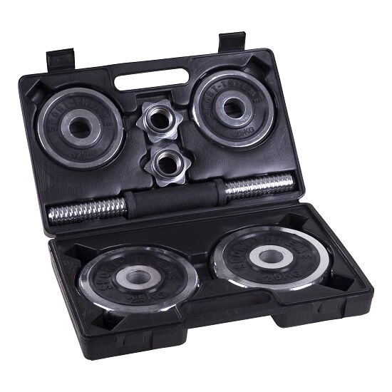 Das Hantel-Set 10 kg von Sport-Thieme ist ein hochwertiges Set für das Training im Fitnessstudio oder den eigenen vier Wänden. Die griffige Hantelstange liegt während des Ihres Krafttrainings sicher und rutschfest in der Hand. Das Hantel-Set hat ein maximales Gewicht von 10 kg. Die Kurzhantelstange, Hantelscheiben mit einer Gummieinlage im Inneren und die Verschlüsse werden Ihnen in einem robusten ABS-Koffer geliefert. Dieser sorgt für einen schnellen Transport und eine sichere Aufbewahrung nach Ihrer Fitness.
