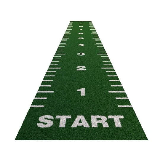 Die Sport-Thieme Sprintlaufbahn „Essential“ ist mit Start, Nummern und Linienmarkierungen gekennzeichnet. Das Schlitten-, Geschwindigkeits- und Schnelligkeitstraining ist somit optimal möglich. Dank der robusten und sehr dichten Polyethylen-Fasern kann selbst starke Reibung, welche beispielsweise beim Training mit Gewichten entsteht, der Laufbahn nichts anhaben. Die hohe Faserdichte bietet darüber hinaus einen guten Grip. Auch die UV-Beständigkeit überzeugt: Die Kunstrasen-Laufbahn lässt sich dadurch sowohl im Innen-, als auch im Außenbereich einsetzen. Die Rückseite der Bahn besteht aus LatexGebräuchliche Bezeichnung für Gummi. Latex ist der Milchsaft des Kautschukbaums und ein Bestandteil von Gummi. Er wird nach dem Trocknen als Kautschuk bezeichnet., welches für eine perfekte Rutschfestigkeit sorgt.
