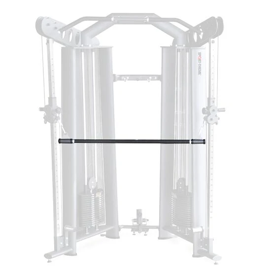 Die Zugstange befestigen Sie einfach mittels Karabiner an den beiden Umlenkrollen des Sport-Thieme Multi-Kabelzugs „OV“. Die Trainingsstange können Sie nun wie eine Langhantelstange einsetzen und je nach eingestelltem Winkel der Kabelzüge z. B. für Überzüge oder Ruderübungen verwenden. Der Vorteil im Vergleich zur geraden Trizepsstange: Sie können in den Übungen deutlich breiter greifen sowie das Gewicht beider Gewichtsblöcke „aufladen“. Im Vergleich zur Langhantelstange überzeugen Übungen am Kabelzug zudem durch eine konstante Widerstandskurve in jeder Phase der Übung.